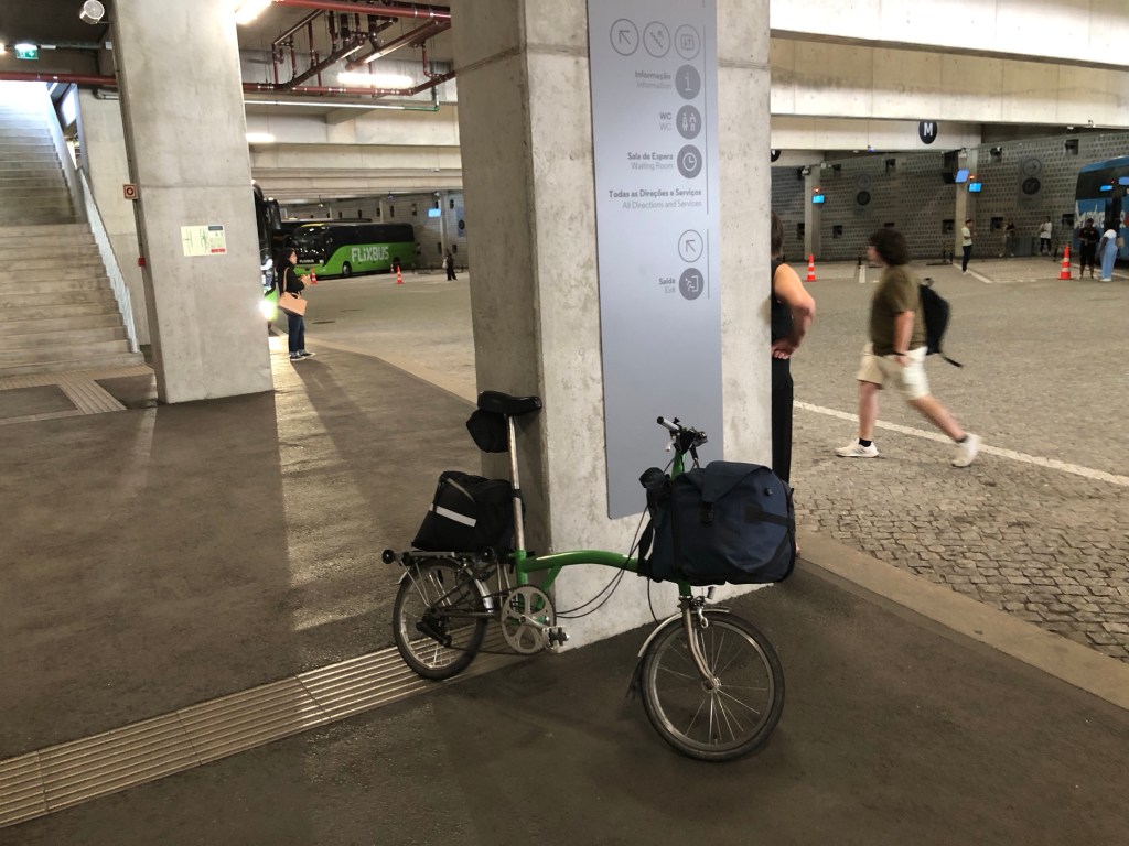 The Portuguese railway had let me down. But google maps says there’s a route by bus. The bus station is a short walk from the train station but is an ugly concrete construction with the buses waiting in a concrete cave of doom. To further improve my mood I ate the worst ever pizza in an eating establishment above the cave.