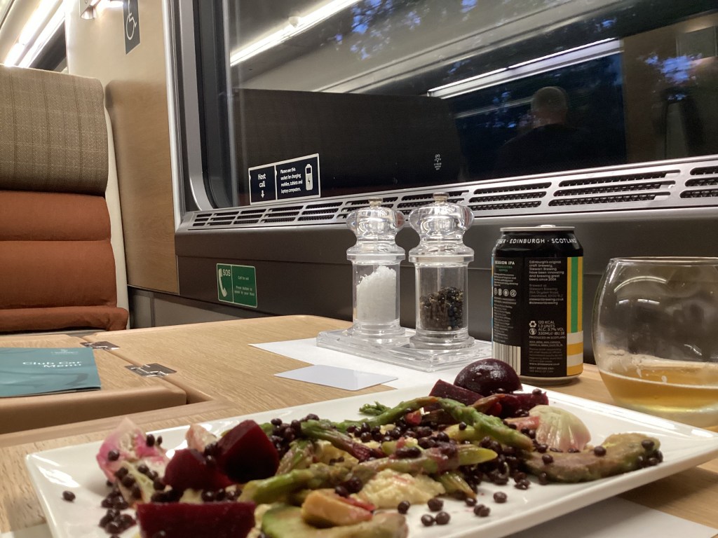 All very civilised, dinner (overpriced) and breakfast in the buffet car.