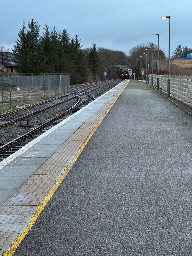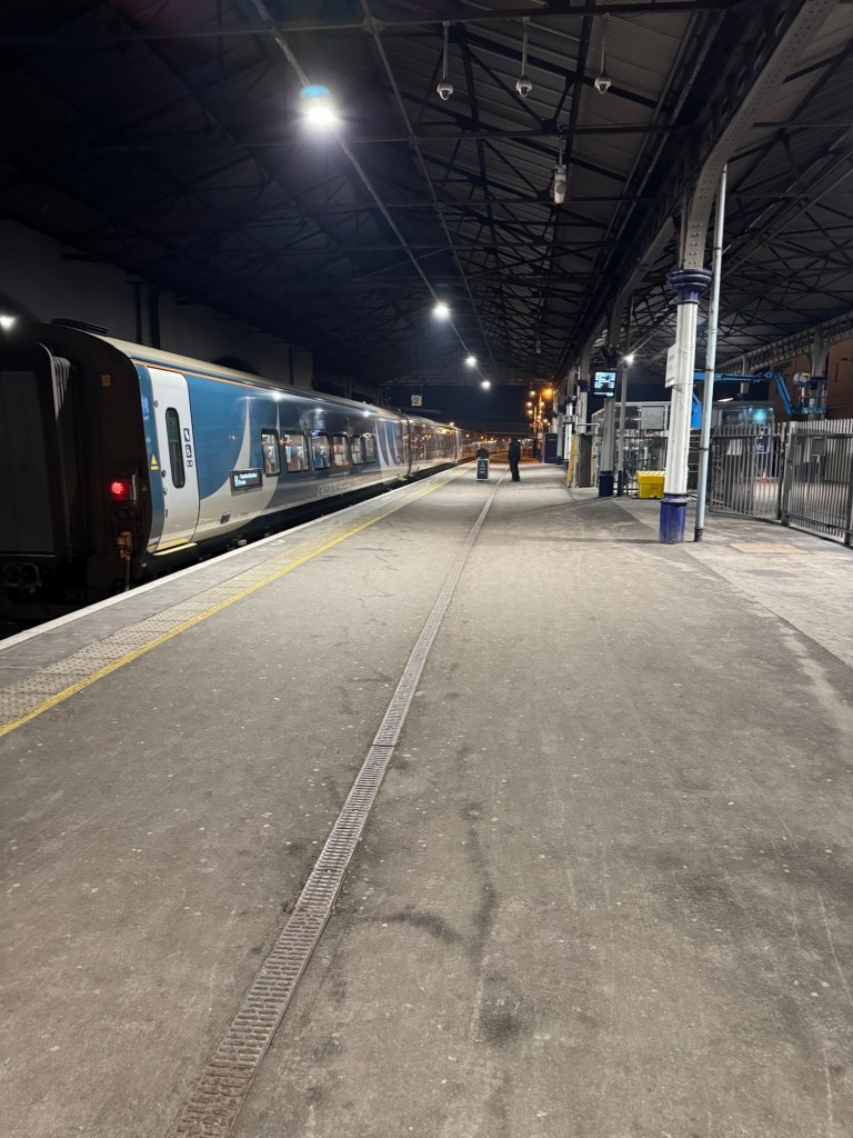 Train arriving and it’s getting dark.