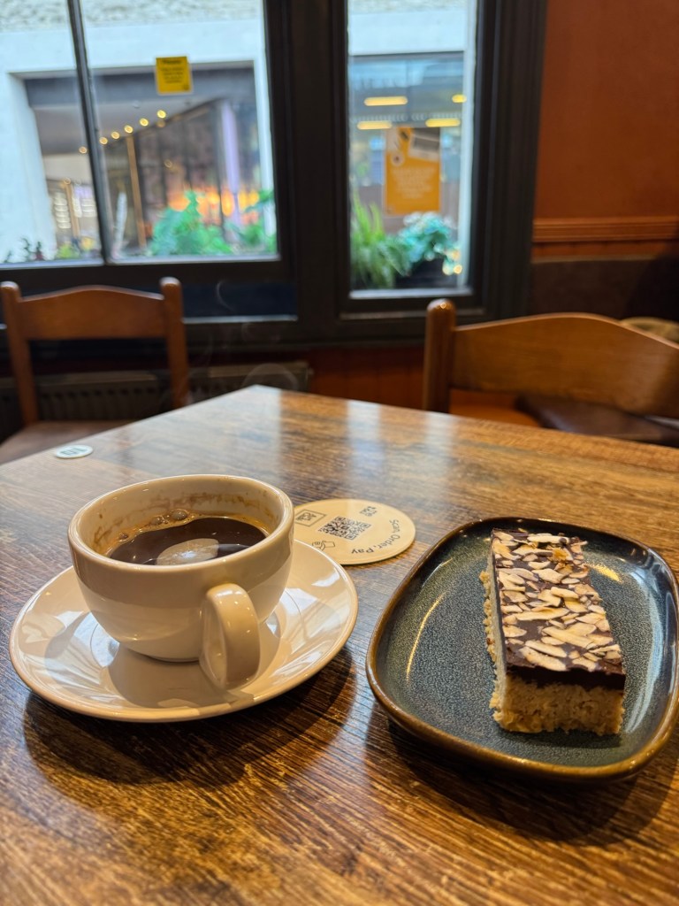 Coffee and flapjack in the Art Café.