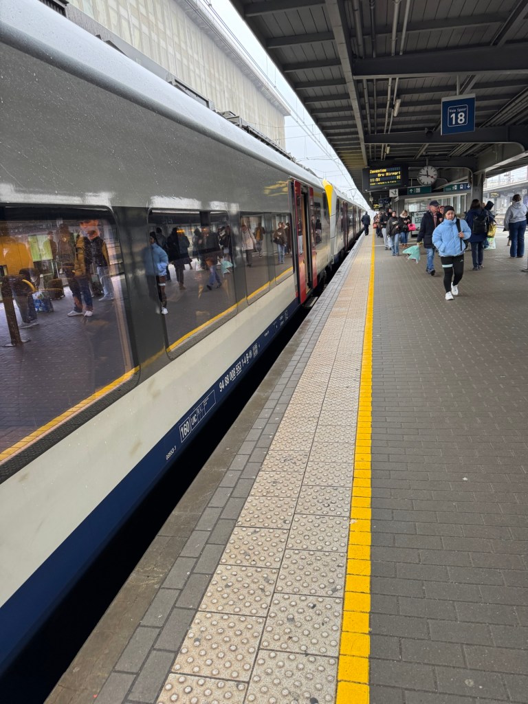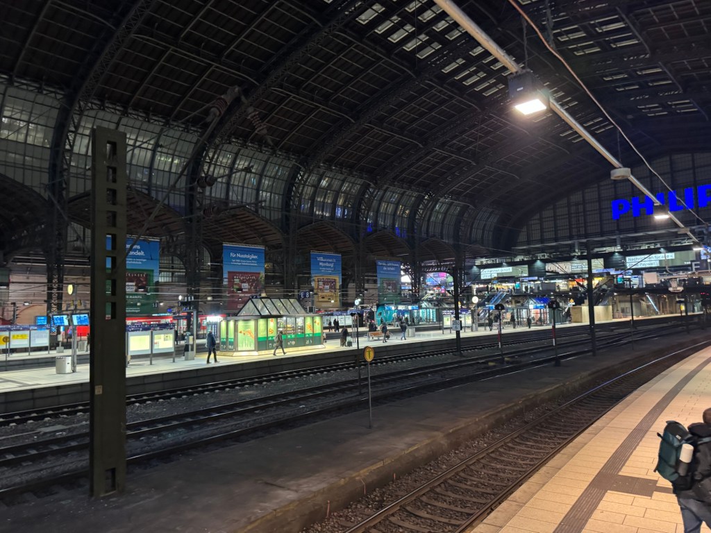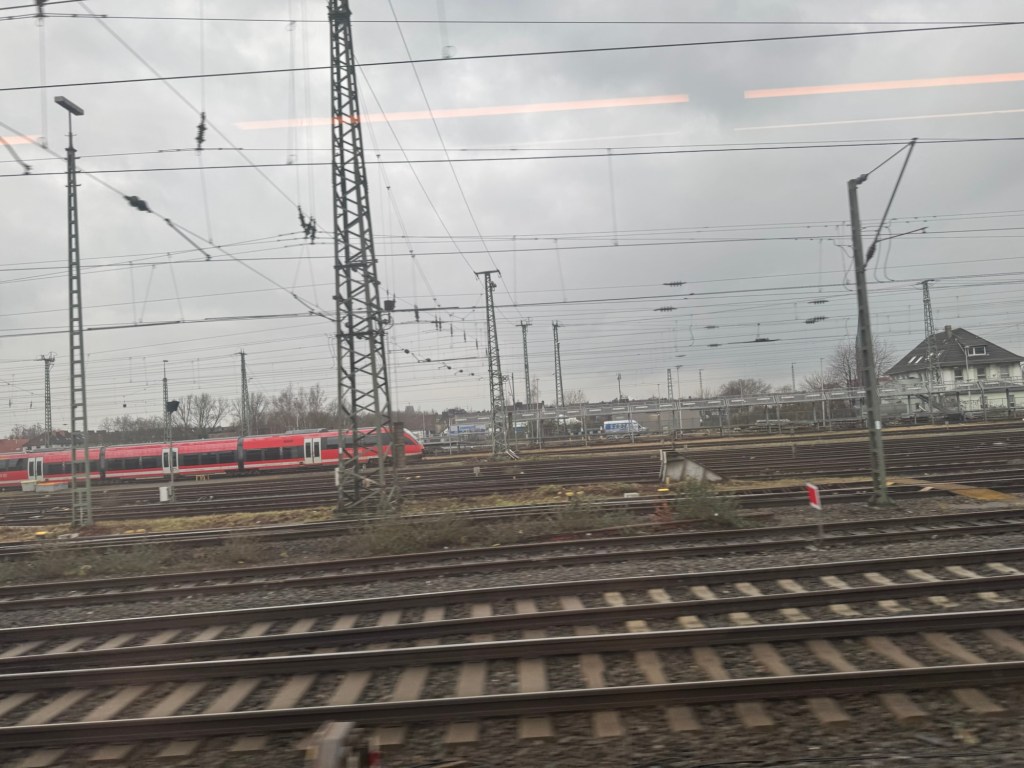 The next leg is to Hamburg. This train is also delayed, by maintenance work on the track.