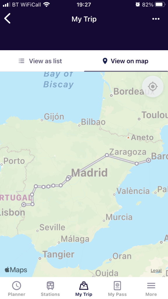 Yes, it certainly was. Traveling through France, Spain, Portugal, England, Scotland, watching the changing landscape, agriculture, seeing towns and cities, all from the comfort of a train, can’t be beaten. Meeting a whole load of different people, and chatting. Exploring cities, hunting food, this was a full on experience. Far superior to flying.