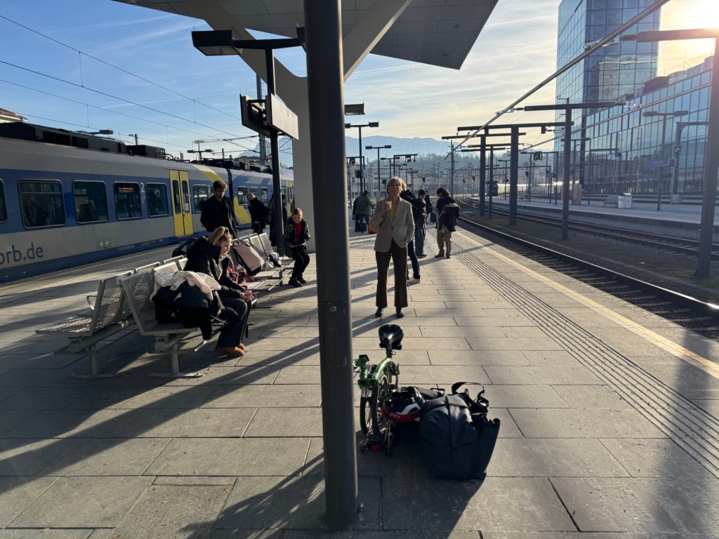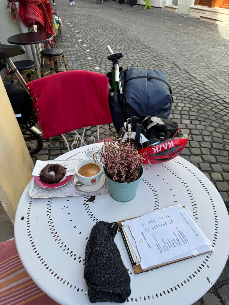 Ausburger WasserfahrradKaffee und KüchenIt’s warm- eating outside in February Time to head to the station