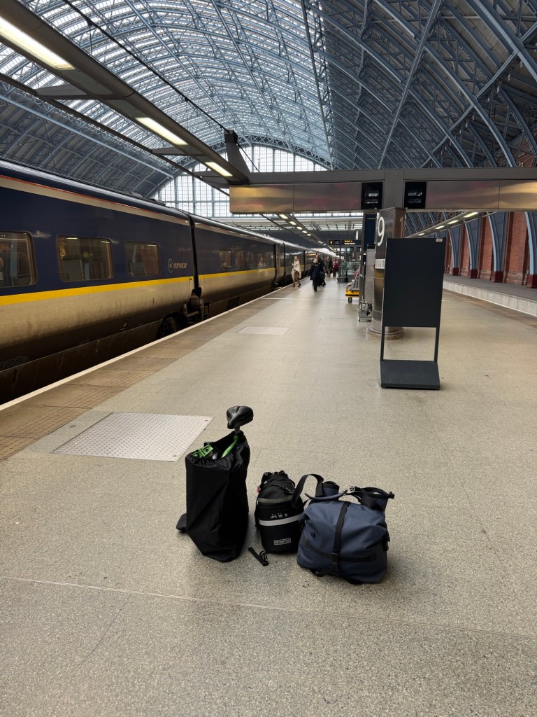 Packed for the Eurostar.Ready for the off at St Pancras.
