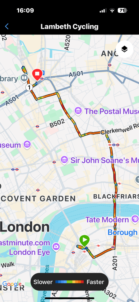 The cycle route was full of commuting cyclist. Some of which were very fast, some not so, and some who didn’t seem to be quite aware of what was going on.