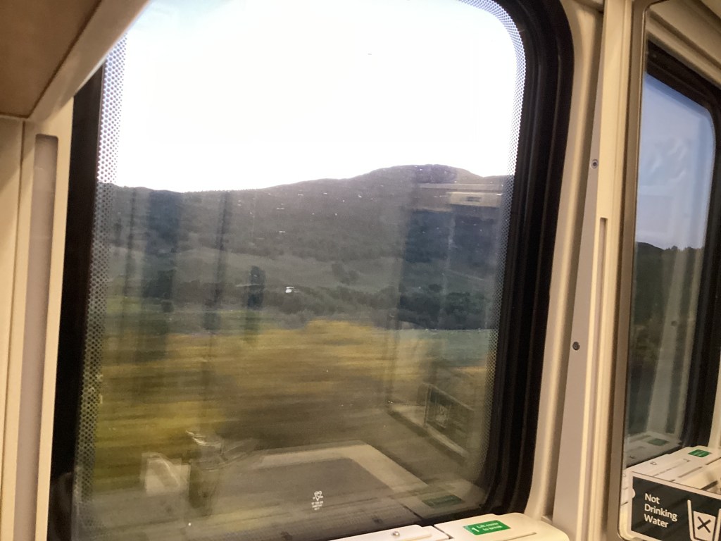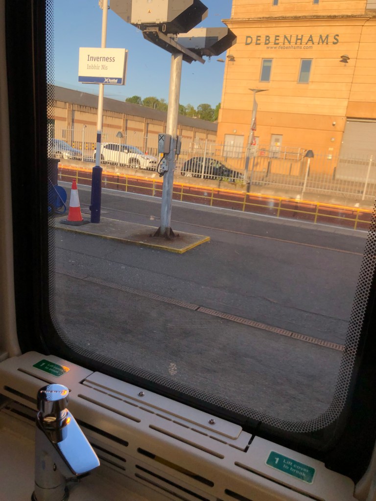 Cloud still lowRain has started Change to the Caledonian Sleeper at Inverness.Sunny breakfast on the move