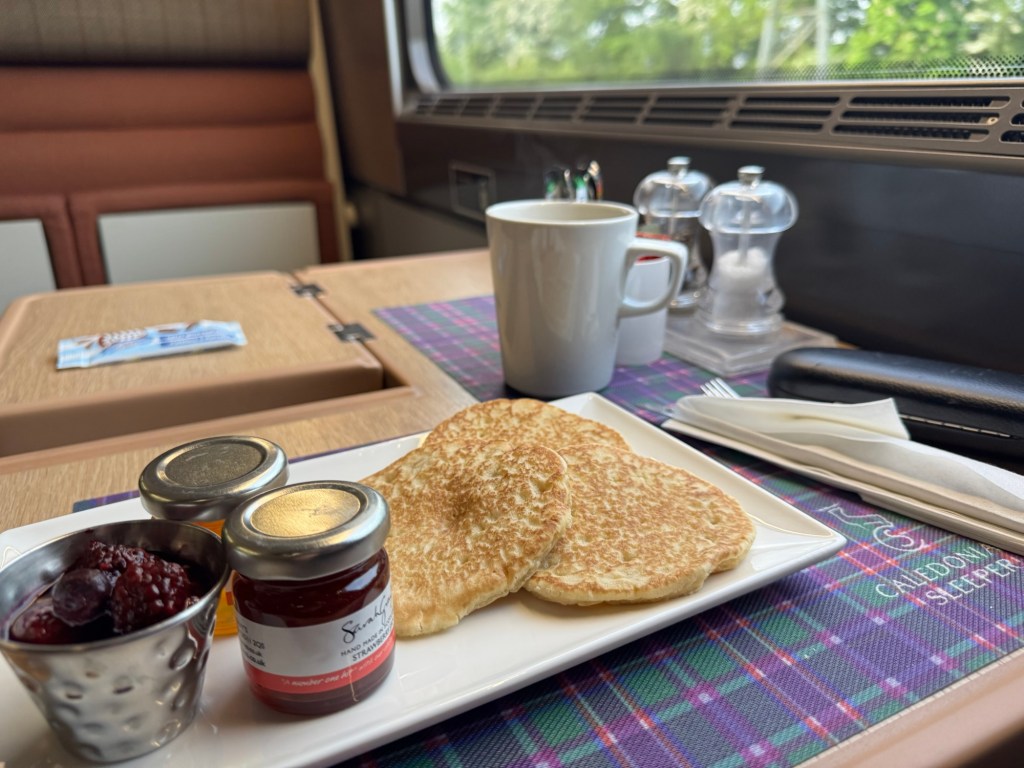 Not sure this breakfast looks appetising. It tasted ok. A few issues on the train. The lock on the cabin was not fully functioning, no pull out table in cabin, coffee machine in buffet car not working. There are some maintenance issues it appears.
