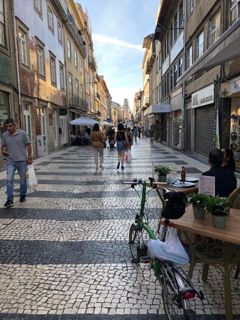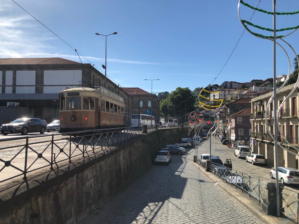 There were loads of people sketching the buildings while sat on the steps.The old tramLots of the buildings are tiled on the outside.Looking towards Porto The Alantic